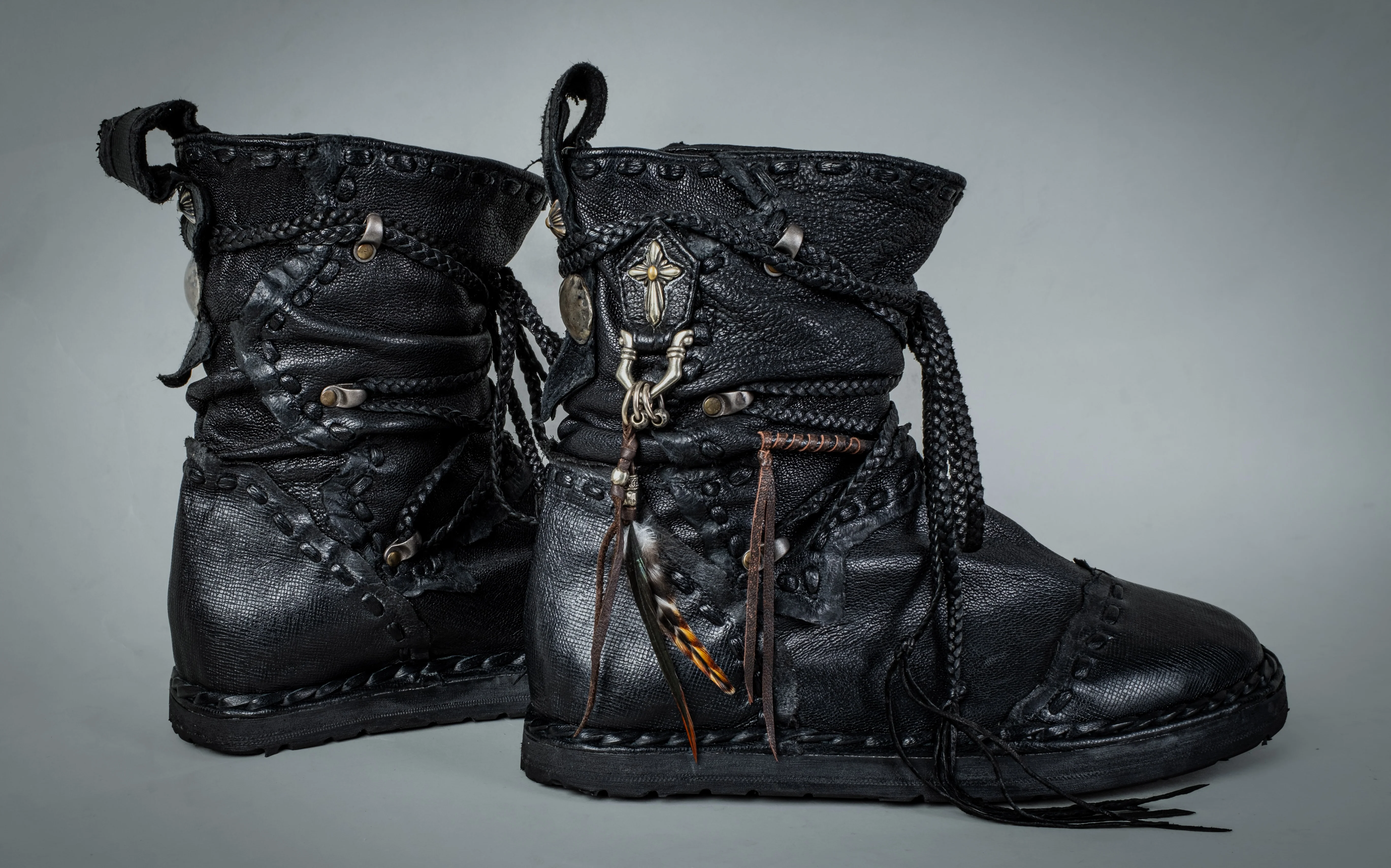 Each pair of our limited edition Moccasin boots is a one-of-a-kind masterpiece, featuring charms and elements selected and arranged by Teruki himself. With his meticulous attention to detail, Teruki has transformed these boots into bold, artistic expressions of individuality.