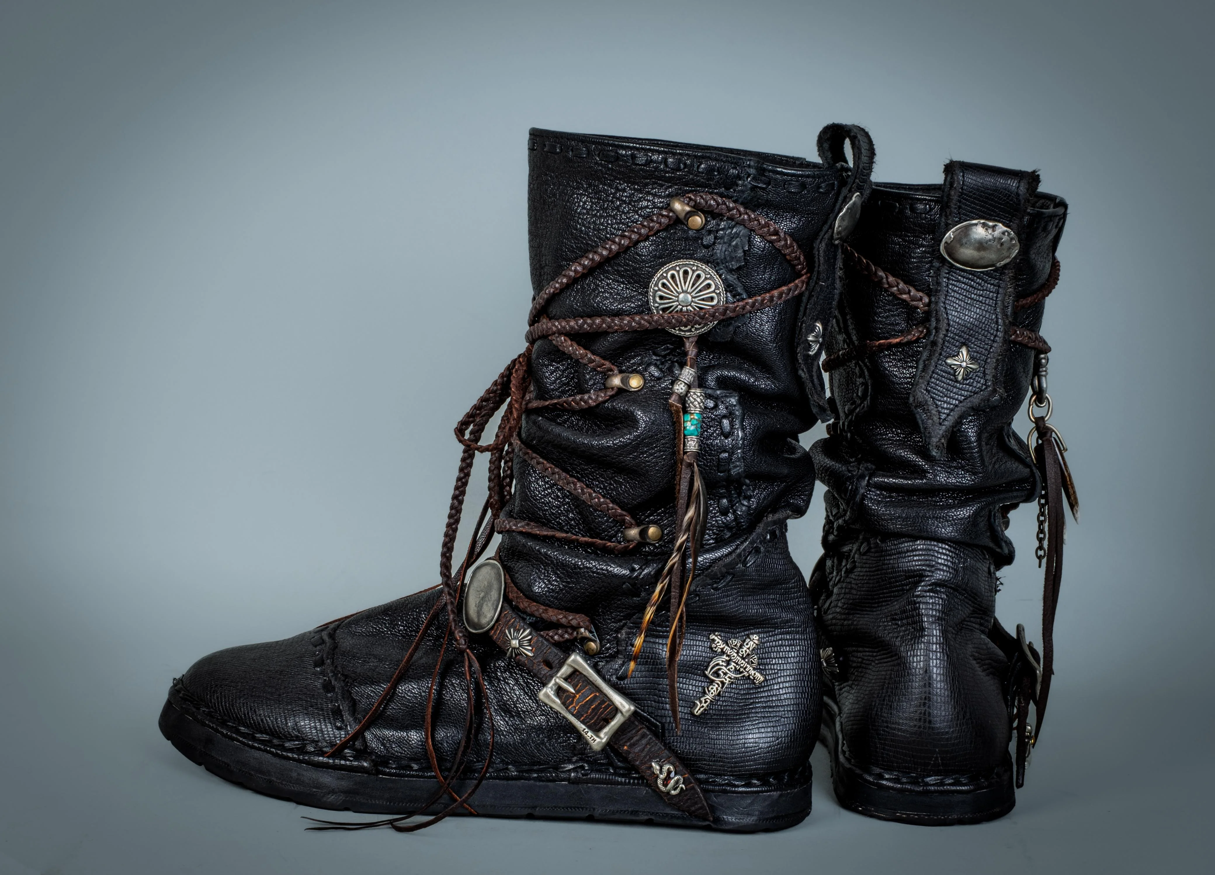Each pair of our limited edition Moccasin boots is a one-of-a-kind masterpiece, featuring charms and elements selected and arranged by Teruki himself. With his meticulous attention to detail, Teruki has transformed these boots into bold, artistic expressions of individuality.