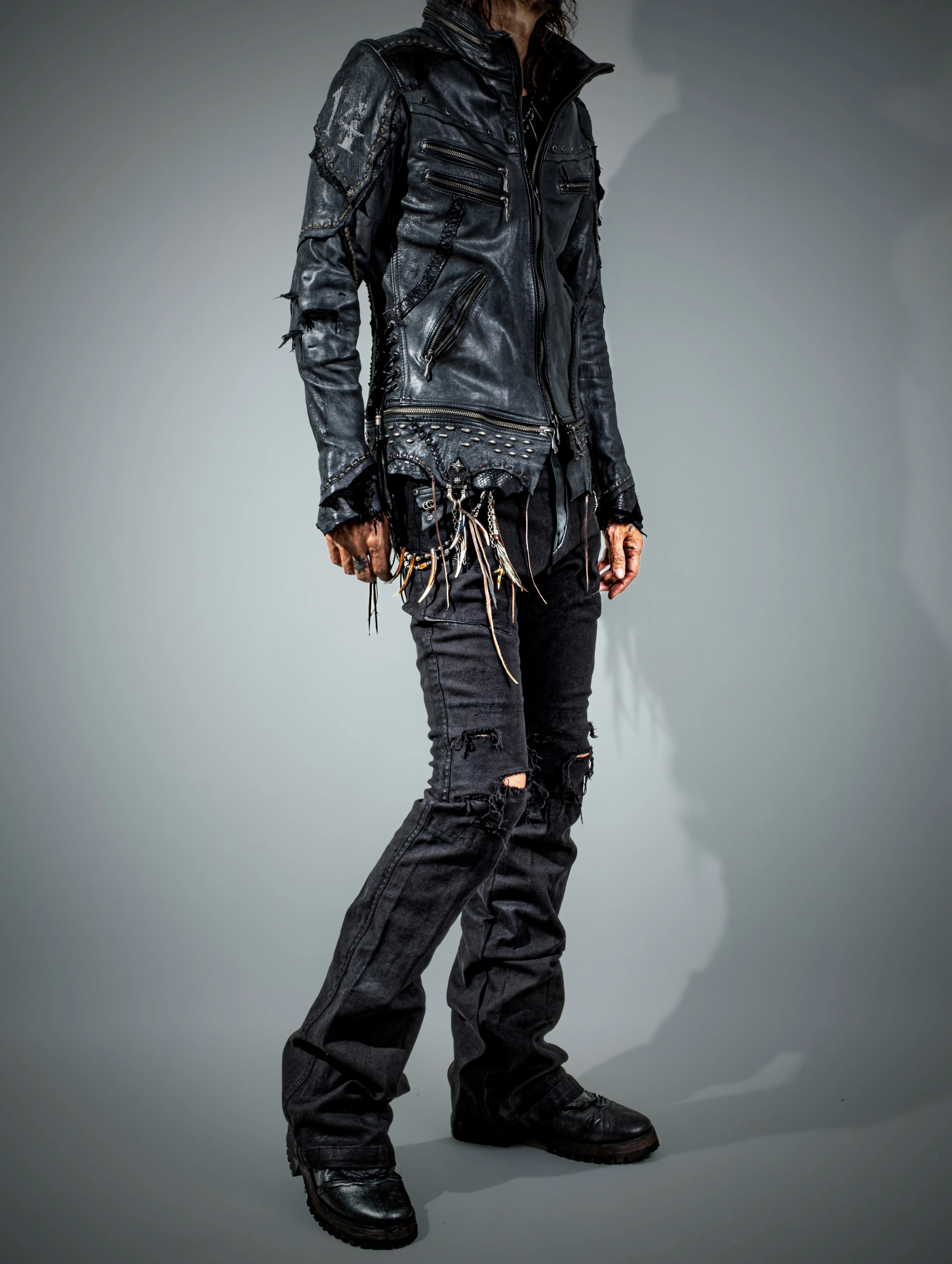 Each jacket is hand-finished, each stroke intentional. Painted leather transforms every piece into a singular artifact—no two are the same. Snakeskin replaces the original sheep leather, adding venom and elegance. And a new horsefur panel moves with instinctive grace, catching light like heat mirage off the sand.