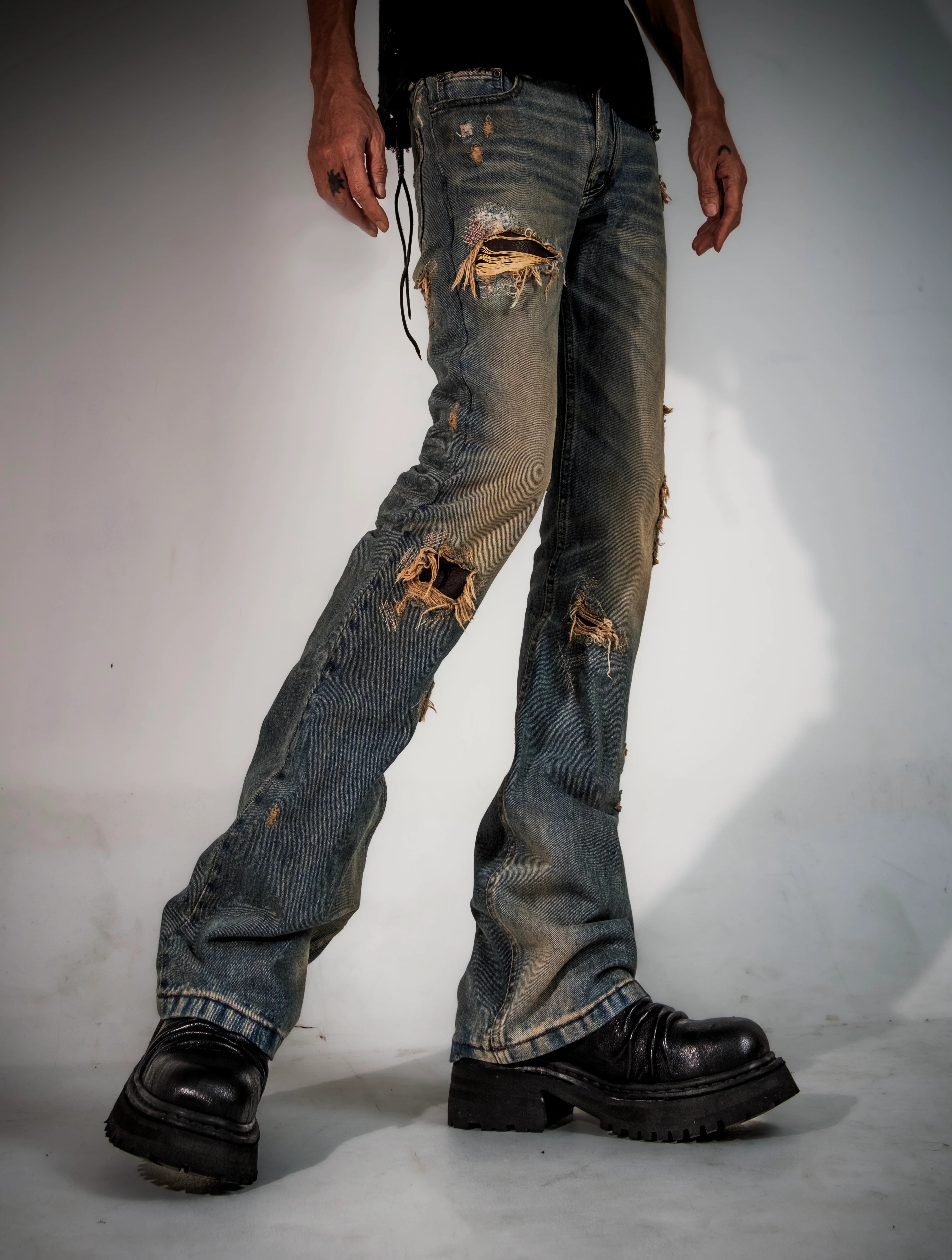 Hendrix 02 takes the same foundation further—more layered, more pronounced in character. The bootcut silhouette remains balanced and versatile, while the surface is pushed into a more complex expression.