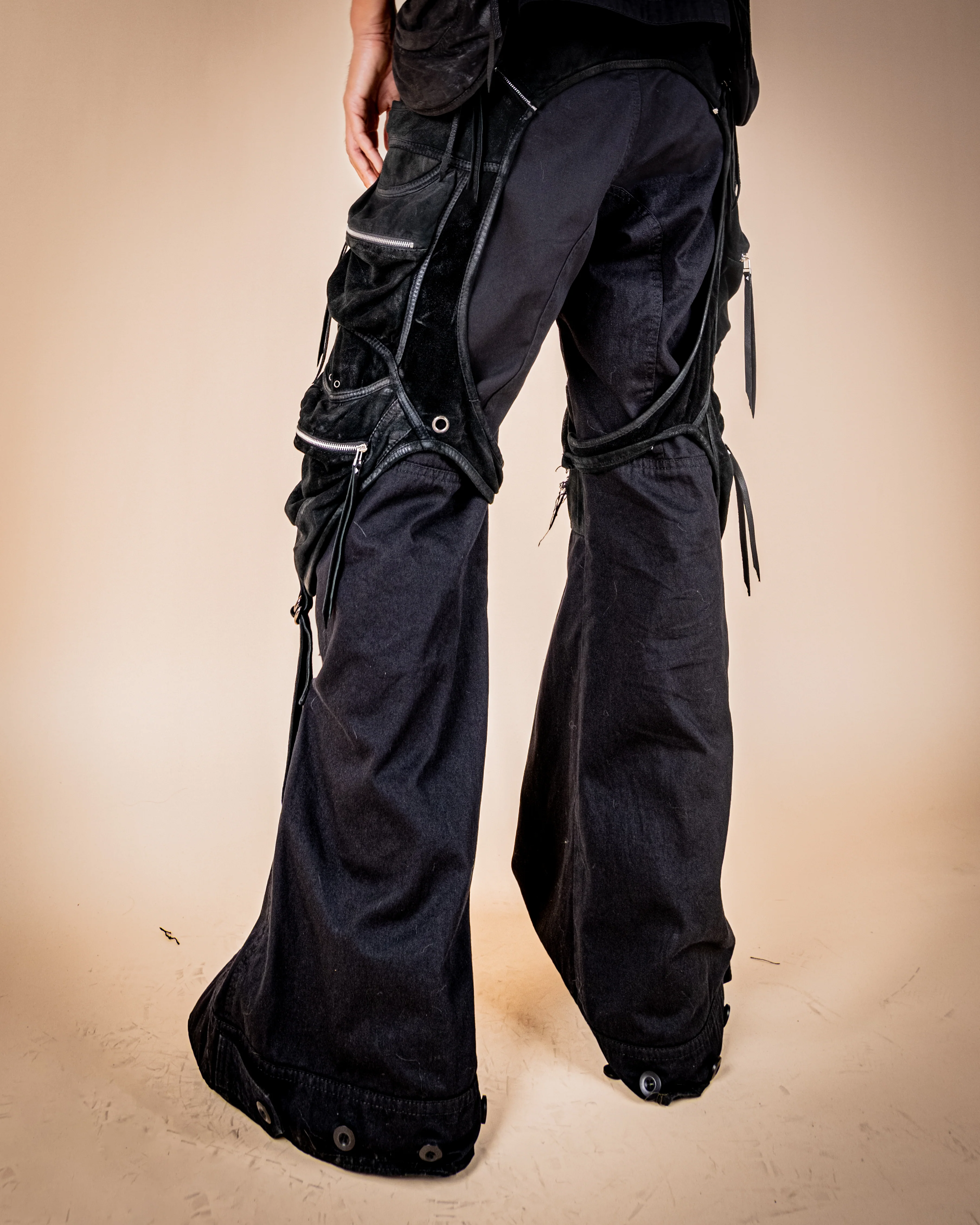 Crafted from premium materials, these pants offer a fit that flatters every body type. The adjustable bottom width allows you to switch between four different sizes, giving you the flexibility to style them your way. Whether you're hitting the streets or making your mark at the next big event, the Transforma Pants blend functionality with a modern, daring silhouette.