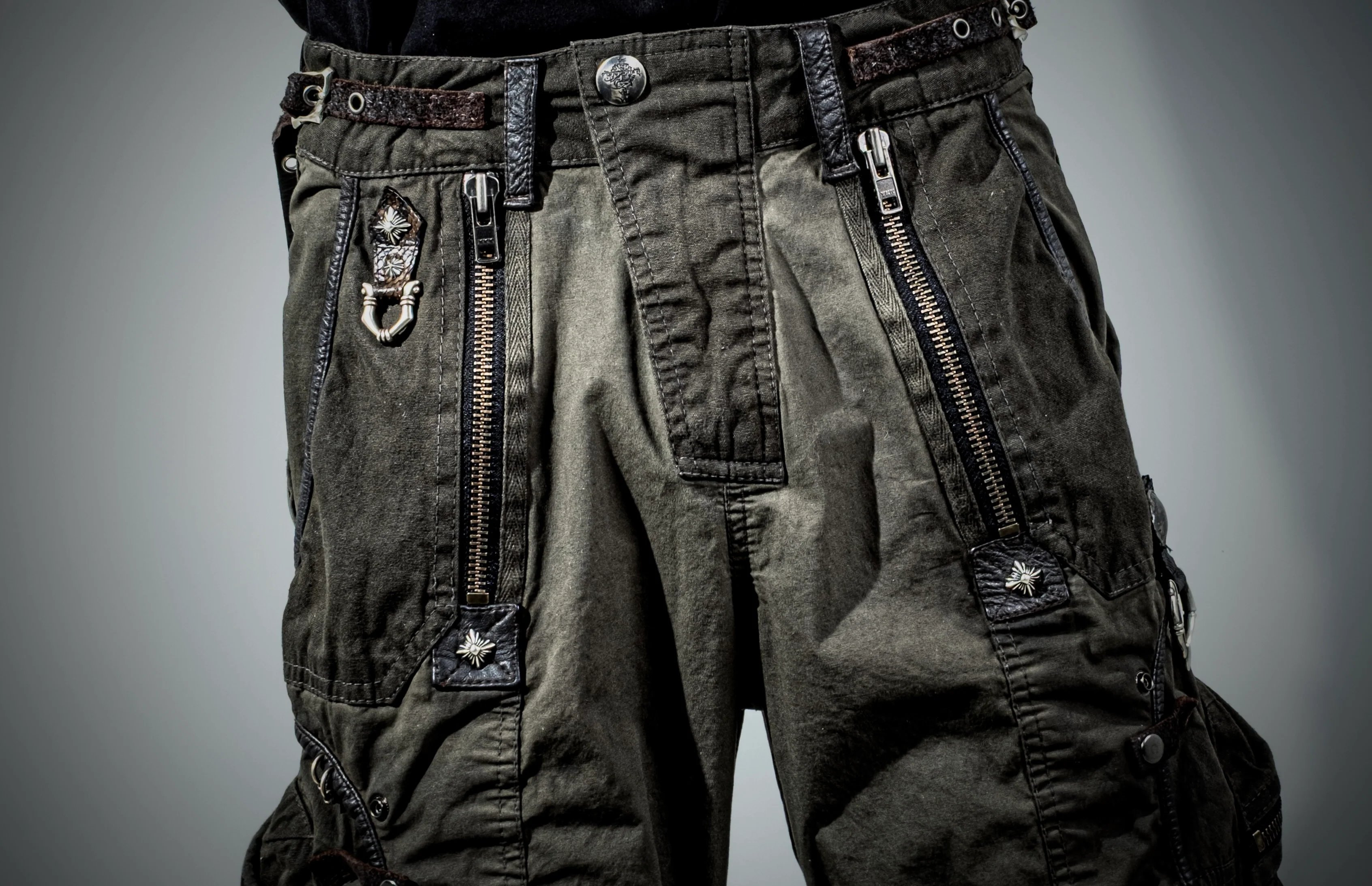 Forged from cotton poplin, durable canvas, and genuine leather accents, these pants fuse tactical resilience with urban precision. The 3/4 length cuts a striking profile, while Velcro-secured leg openings and an integrated leather belt offer control—adjustable, purposeful, uncompromising.