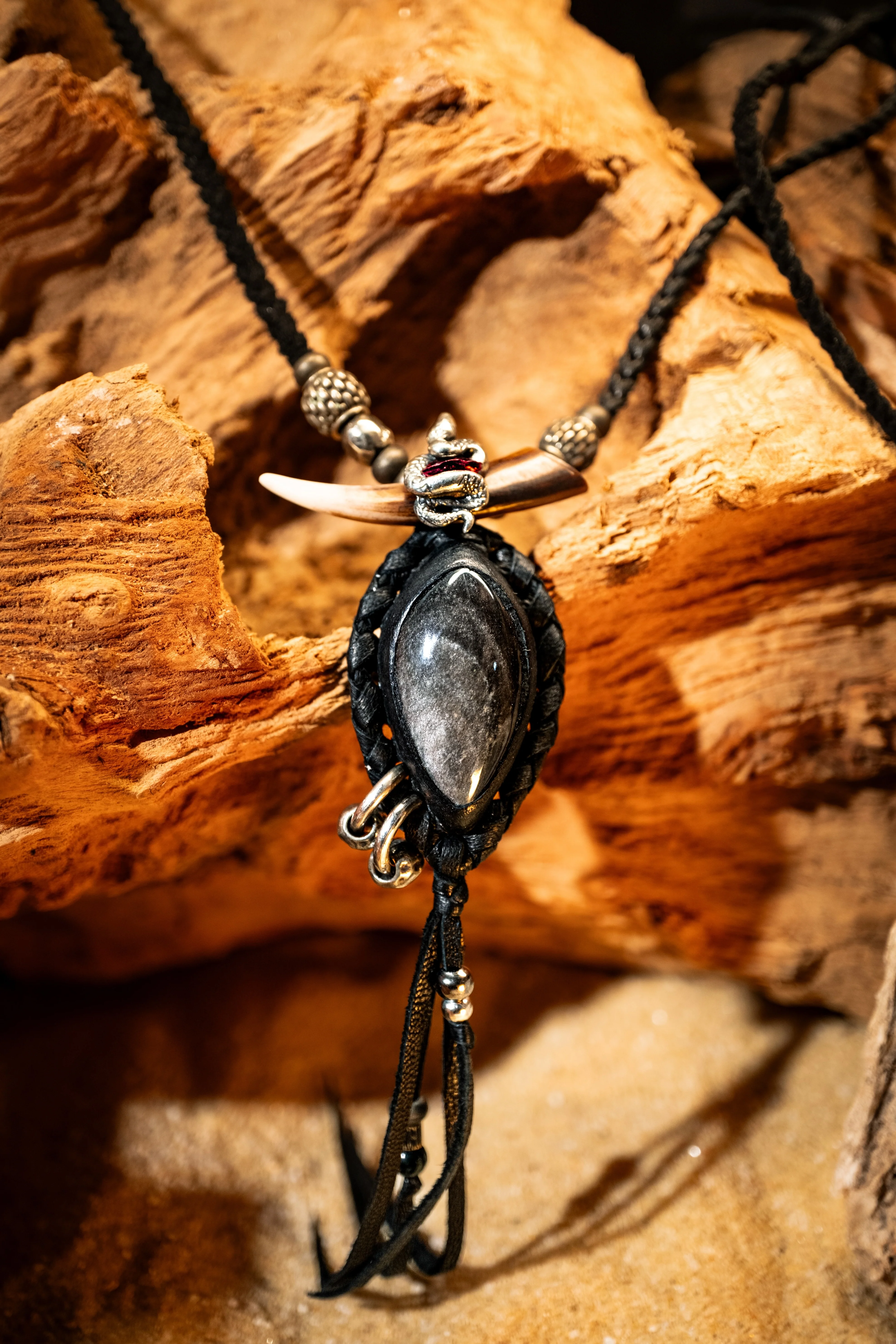 - Bail: Snake Garnet charm on Buffalo Bone