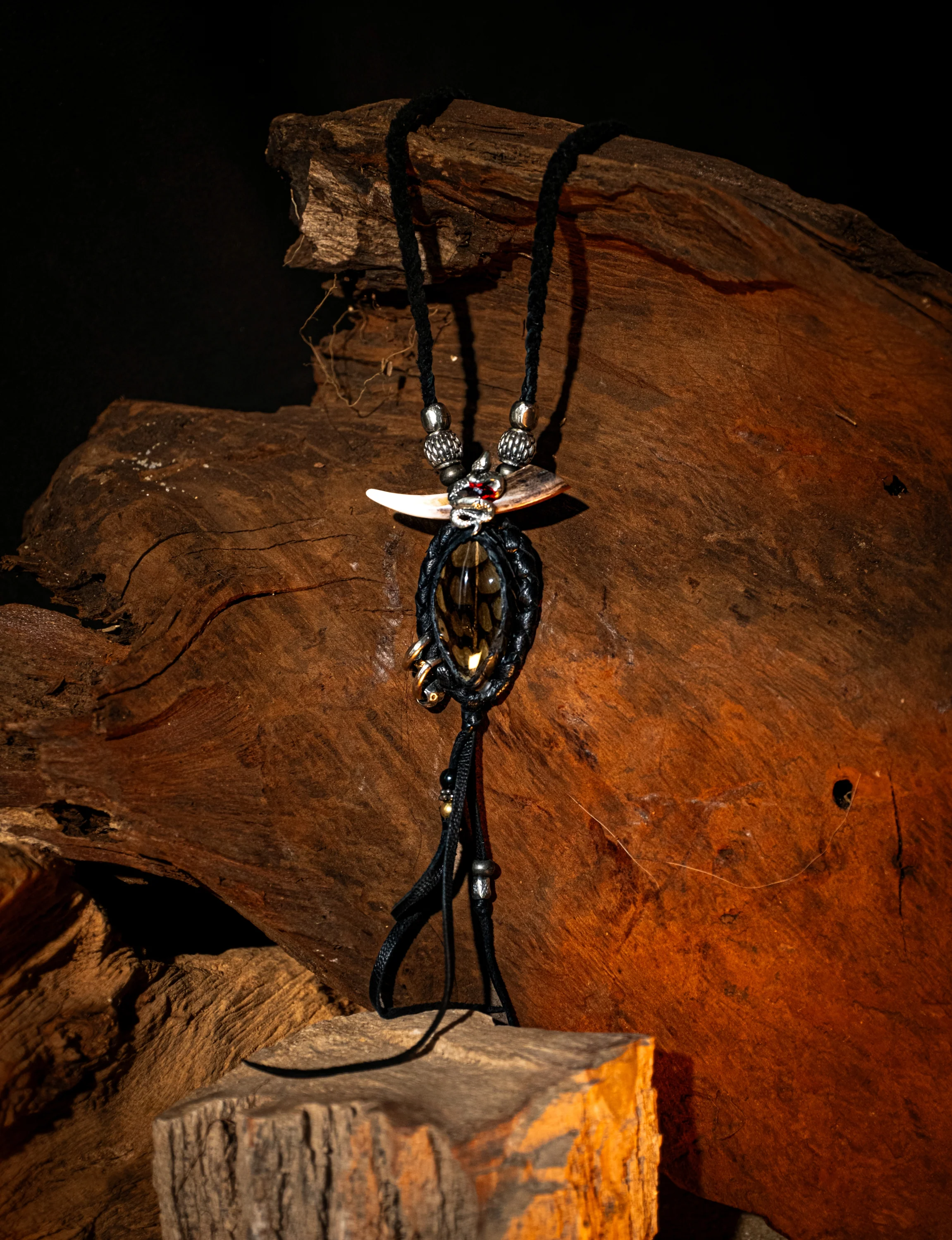 - Bail: Snake Garnet charm on Buffalo Bone