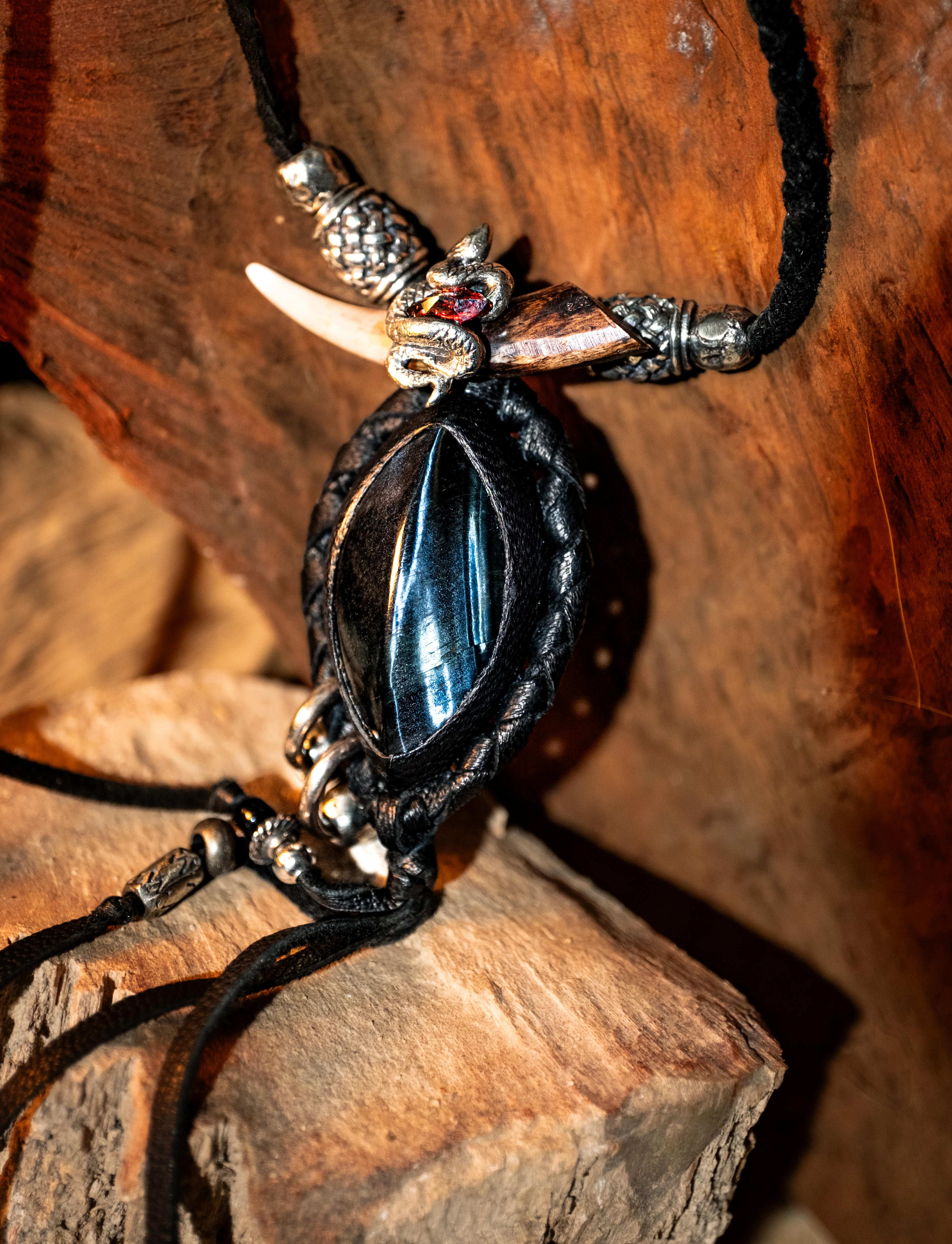 - Bail: Snake Garnet charm on Buffalo Bone
